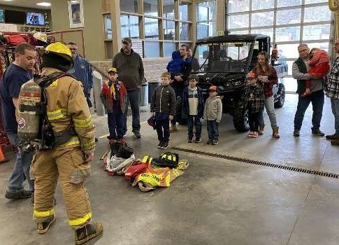 The Scouts toured Engine 6-13, Rescue 5-13, and the UTV, and learned about the various tools on each apparatus.Firefighters demonstrated how they use a thermal imaging camera, gas meter, stabilizing cribbing, and Hurst rescue equipment.