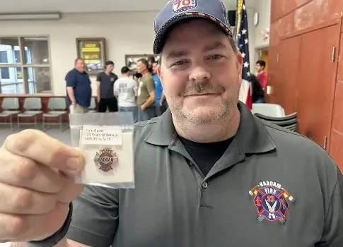 (June 14, 2025) — Haddam Volunteer Fire Company Chief Baber received his 25-years-of-service pin during the month of June.