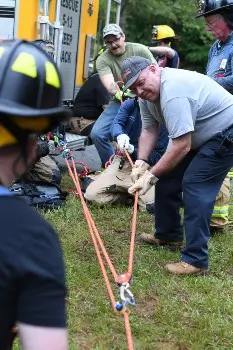 Led by Firefighter Kyle Everett, the hands-on training focused on building pulley systems that provide mechanical advantage—crucial for safely lifting an injured person from steep or uneven terrain.