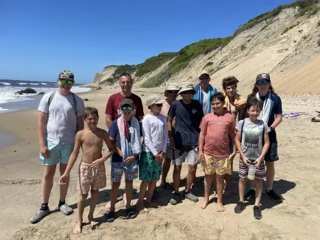 The Scouts also competed with other Scouts from across Connecticut, New York, Massachusetts and Pennsylvania in numerous camp-wide competitions, and the Killingworth Troop came in in second place in the camp relay and the land and sea games. The troop achieved the status of Honor Troop for the week. (Photo left: L to R, Front: Andrew Bafumi, Wyatt Markim, Mark Drega, John Madonna Rear: Sean Link, Scoutmaster Eric Bergman, Mason Bergman, Austen Hunter, Odin Torello, Nils Voght-Eriksen, Trustee Matt Link, Max Bergman, Mathias Carroll)