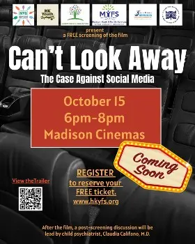 The film will be shown on October 15, 2025 from 6:00 p.m. to 8:00 p.m. at Madison Cinema. Following the film, there will be a 30–45 minute panel conversation with Claudia Califano, M.D., a child psychiatrist and professor at the Yale Child Study Center, as well as other local leaders. This is a call to action for caregivers to work together to shift the needle and improve our kids’ mental health.  Joining together to learn and create change is critical.  Please sign up for a free seat in the theater at www.hkyfs.org/event/
