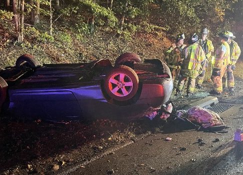 (September 26, 2025) — At 12:40 a.m. on September 25, 2025, Haddam Volunteer Fire Company responded to a single car motor vehicle accident with a rollover on Route 9 South between Exits 13 and 10 in Haddam.