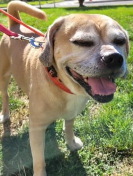 (October 3, 2025) — Take a good look at this handsome little Beagle/Pug mix. His name is Charles, and he is ten years old and weighs twenty-two pounds. Don’t let that age deter you from adopting him, because he has so much love and energy to give. Charles has had a tough journey, but is forging ahead and looking forward to a new life. He is quite a charmer and is also affectionate. Brass City Rescue knew he had to have his second chance at a new life.