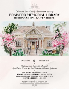 (October 21, 2025) — Brainerd Memorial Library in Haddam invites you to an Open House on Saturday, November 8, 2025, celebrating the completion of its interior renovation.