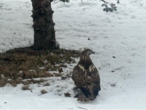 Then it retracted its wings and stayed on top of its prey to suffocate it in the snow…