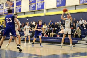 (January 15, 2026) — The Haddam-Killingworth High School Boys basketball team defeated cross-river rival Nathan Hale-Ray of East Haddam in double overtime by the score of 63-52. While the Cougars were up by 20 points, the Bellringers would not be deterred, outscoring the Cougars in the third and fourth quarters 28-14.
