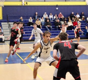 HKHS Senior co-captains Declan Moriarty and Jay Evans continued their one-two punch, Moriarty with 8 points and Evans with 12. Juniors Mason Eighmy and Brody Ferguson played well, contributing 7 points each. The Cougars were thrilled to welcome back Senior powerhouse Spencer Savoy. Savoy, who returned from the injured list, contributed 4 points and excelled under the boards. Rounding out the scoring Senior Ethan Pitts and Junior Noah Marica had 4 points each and Sophomore Evan Garcia was 1-2 from the free throw line.