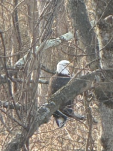 (February 15, 2026) — Brian McLaughlin submitted the photos below, taken from his home office window on Hickory Lane in Higganum. He added, “No matter how cold we think it may be, life goes on. The American Bald Eagle (photo below) seems to like fishing in the open creek behind my house.”