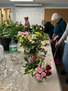 (March 17, 2026) — In the middle of a cold and windy March, Killingworth’s Evergreen Garden Club delivered colorful and beautifully arranged bouquets to several shut-ins and elderly seniors living alone. The flowers were a welcome surprise to recipients and a happy act of volunteerism for Club members, who consider it a more creative activity than weeding and raking at the Traffic Circle or at Town Hall.